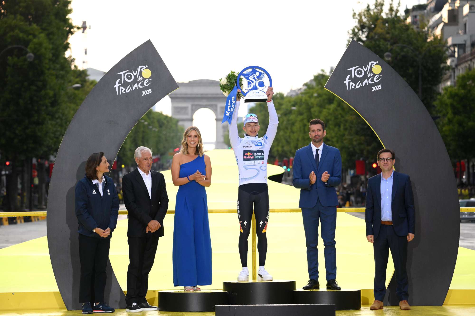 Die Tour de France 2025 markiert einen Meilenstein in der Geschichte von Red Bull - BORA - hansgrohe. Mit dem dritten Platz in der Gesamtwertung durch Florian Lipowitz sicherte sich das Team erstmals ein Podium bei der Tour de France. Eine Premiere ist ebenfalls der Gewinn des Weißen Trikots des besten Jungprofis.