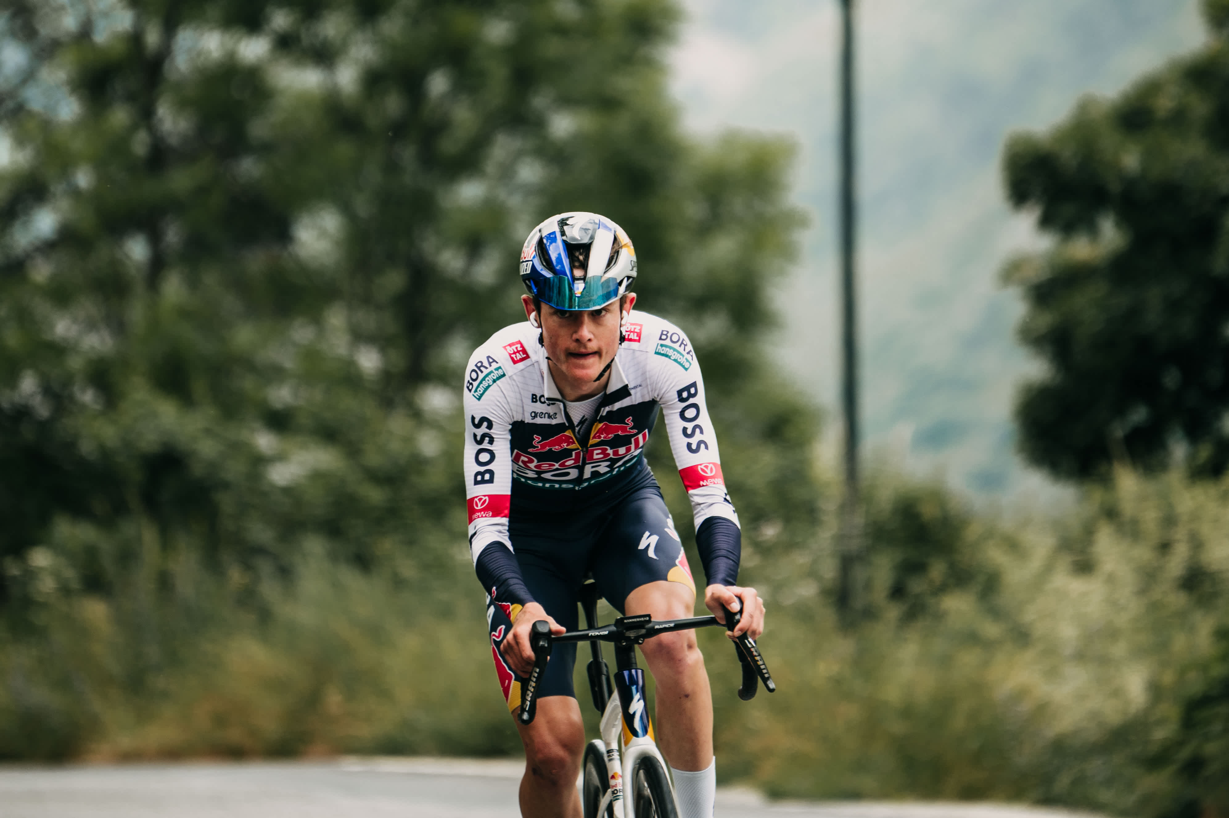 Und seine Aufgabe hier? „Helfen, wo ich kann, wenn mir der Kurs liegt“, sagt er, „wahrscheinlich an den Anstiegen, vor allem für Finn. Er fährt wirklich gut.“